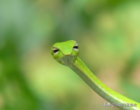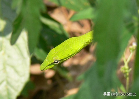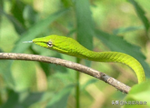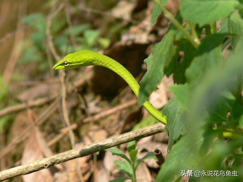 这货眼神好喜感——绿瘦蛇(学名Ahaetulla prasina)
