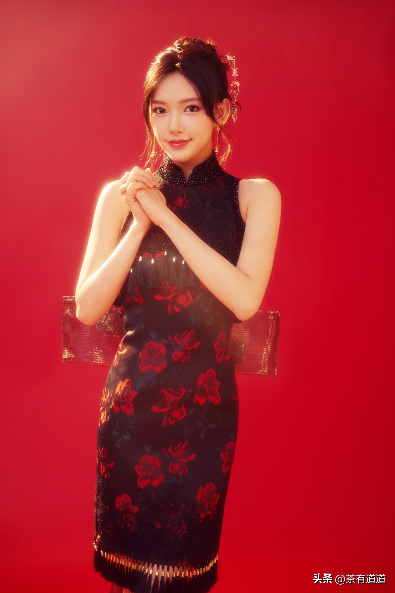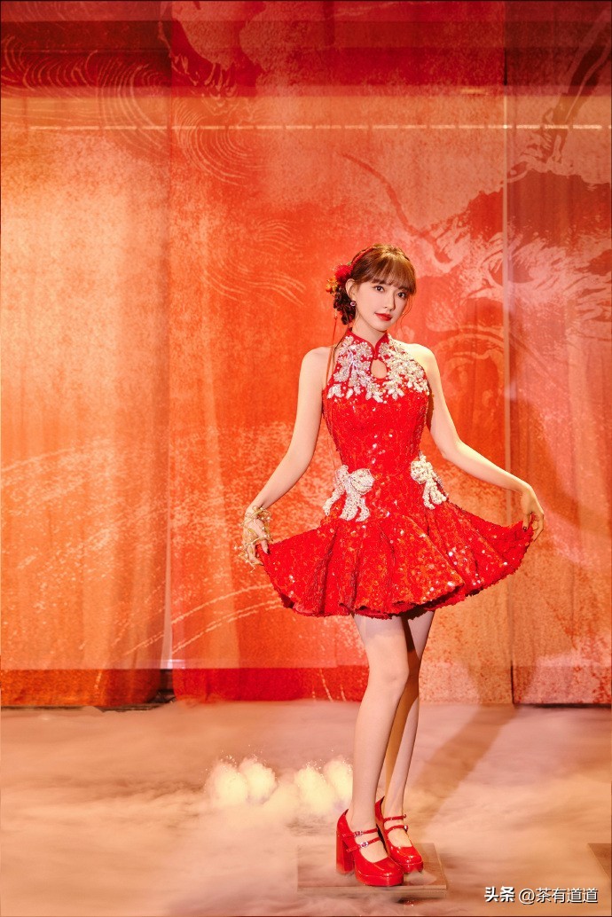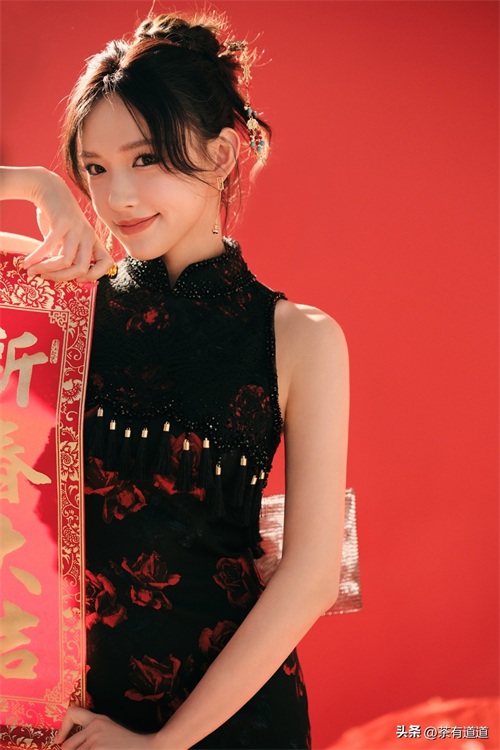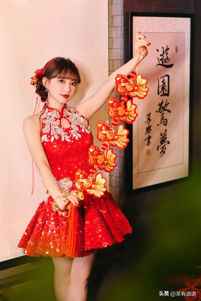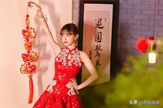 春日丽人 | 程潇春晚身穿中式红色旗袍喜迎春