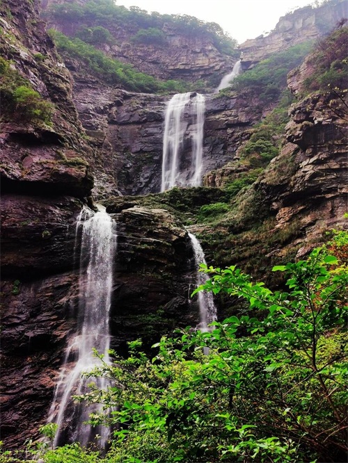 第三句:“飞流直下三千尺”,此句通过夸张的手法,形象地描绘了瀑布从高崖上奔腾直下的壮观景象。“三千尺”并非实指,而是极言瀑布之高、水流之急。这样的描写让人仿佛能听到瀑布轰鸣的声音,感受到水流冲击岩石的磅礴气势。