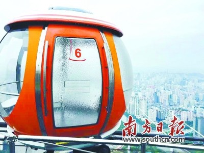 广州塔顶摩天轮的玻璃窗结了厚厚的一层霜。通讯员 钟庆姝 南方日报记者 吴伟洪 摄