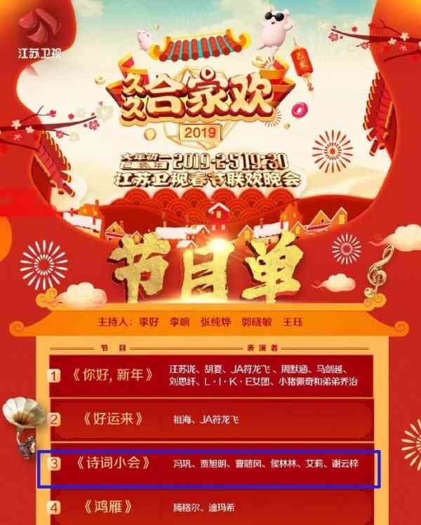 北京日报(ID:Beijing_Daily)记者查阅@江苏卫视春节晚会 官方微博发布的春晚节目单发现,冯巩将在今晚的江苏卫视春晚上,带来节目《诗词小会》。