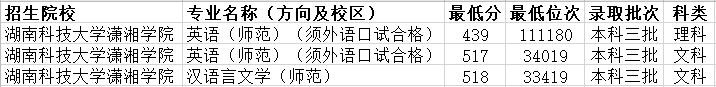 湖南科技大学潇湘学院2019年师范方向专业录取线