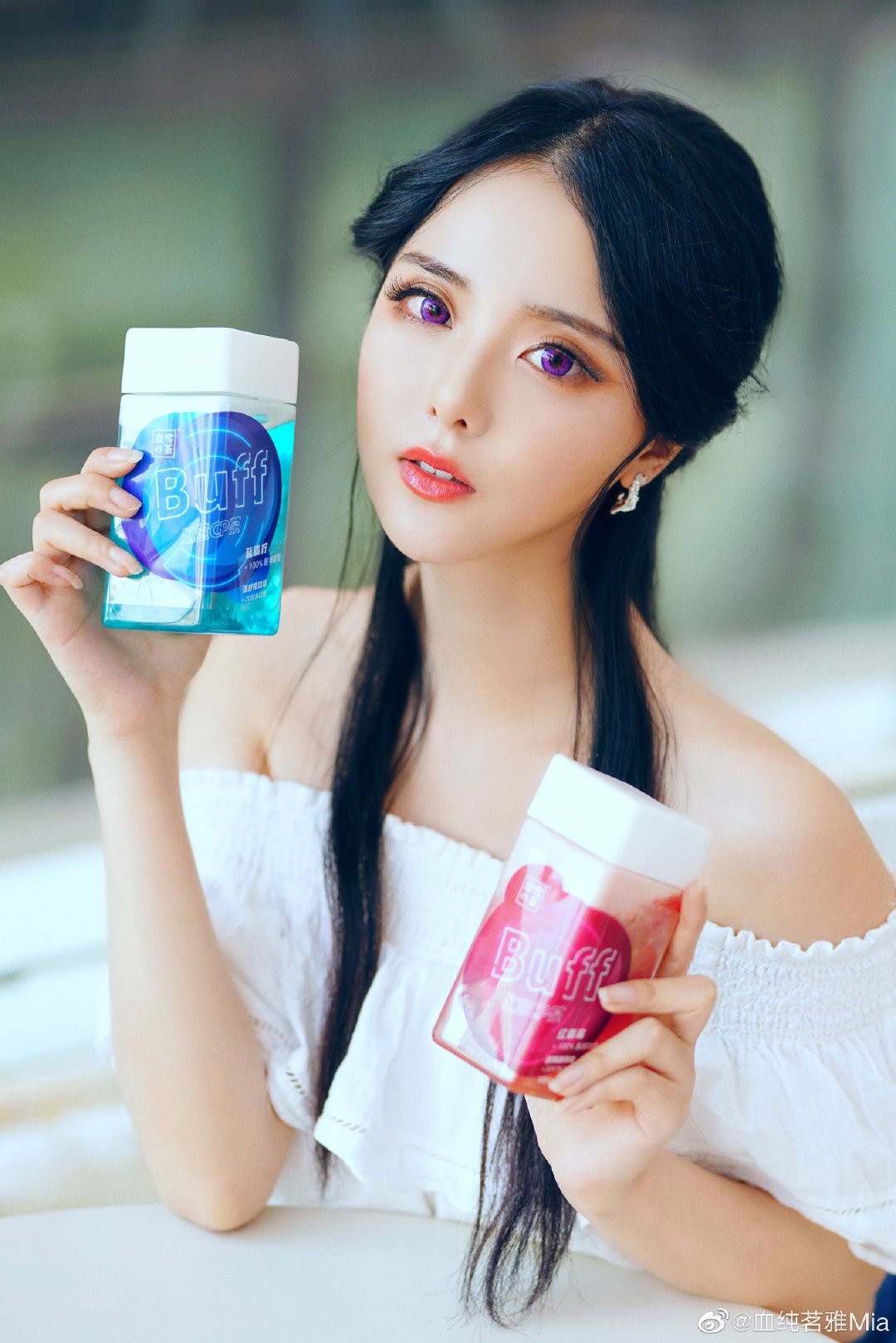 这张图片中的小姐姐好像COS了露娜,手里拿着红Buff和蓝Buff。小姐姐带着紫色的美瞳,配上这份妆容,真的是颜值爆表啊。