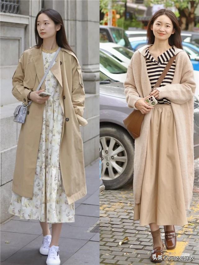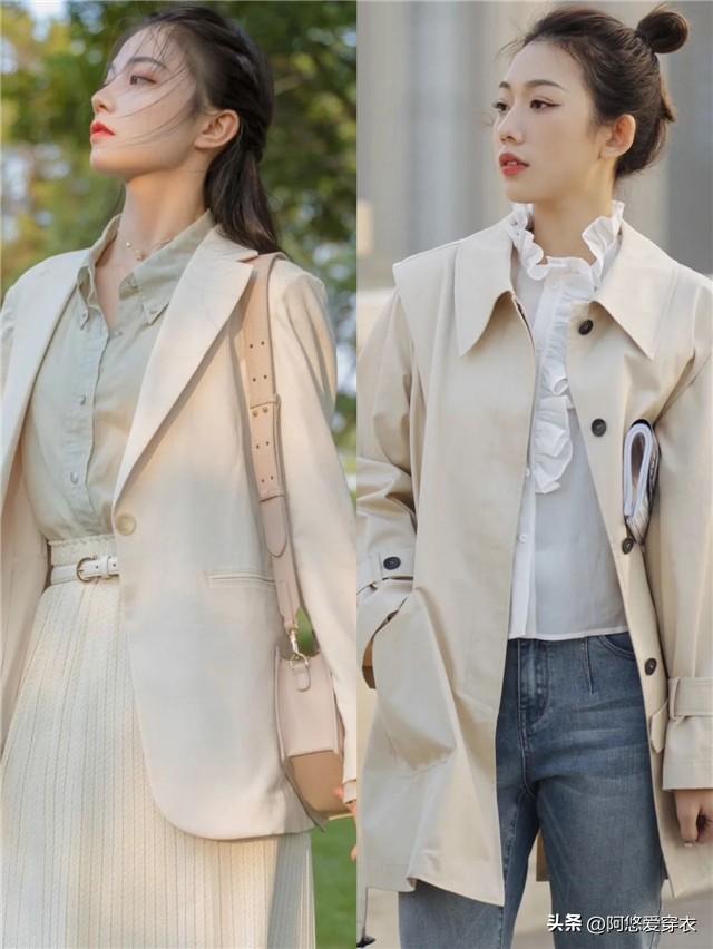 初秋季节,相信女孩们也都会给自己选择各种时髦的风衣吧,风衣在当下真的很受欢迎,但在挑选风衣的时候,你还得考虑颜色,常规的就是卡其色风衣,大家都很喜欢,但除了这种卡其色风衣,之后大家还可以尝试其他的时髦色彩,比如这种杏色风衣,穿在身上清新又简约。