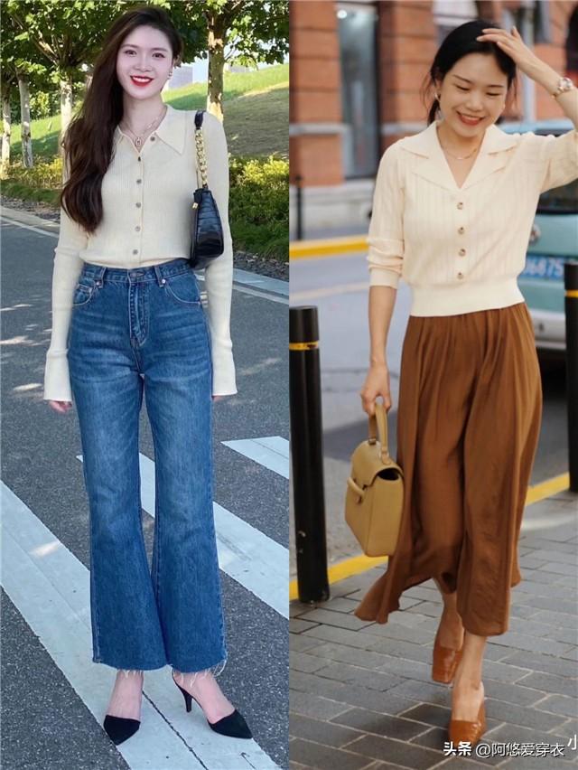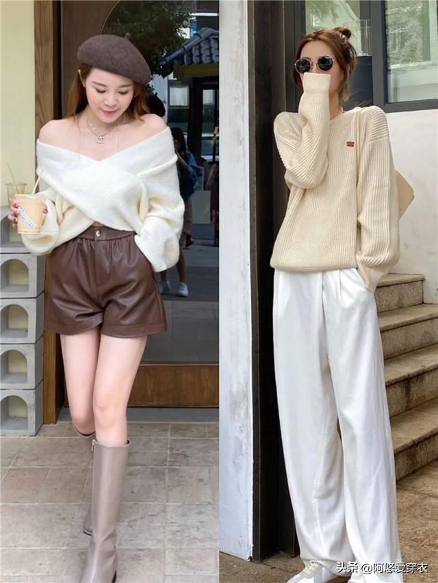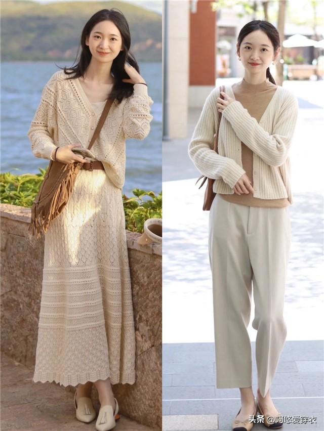 而且在秋天大家挑选针织衫的时候往往都会选那种材质厚实的款式,选择浅色的针织衫都能够降低视觉上的厚重感,穿在身上会觉得轻盈。