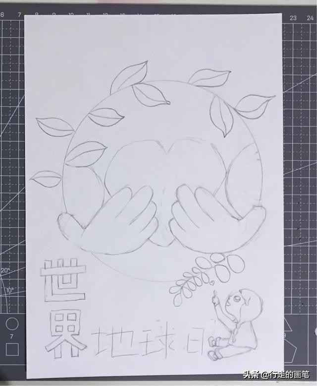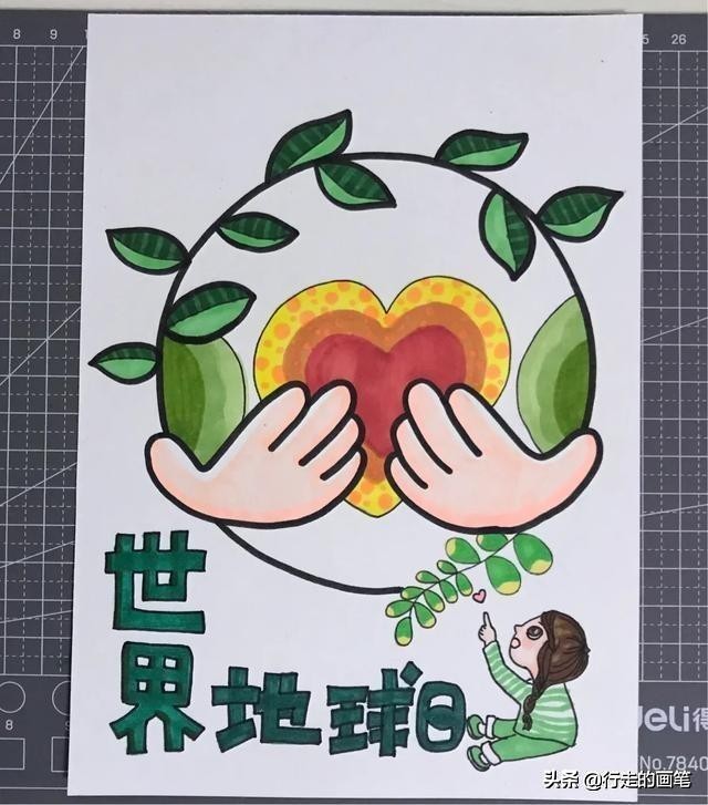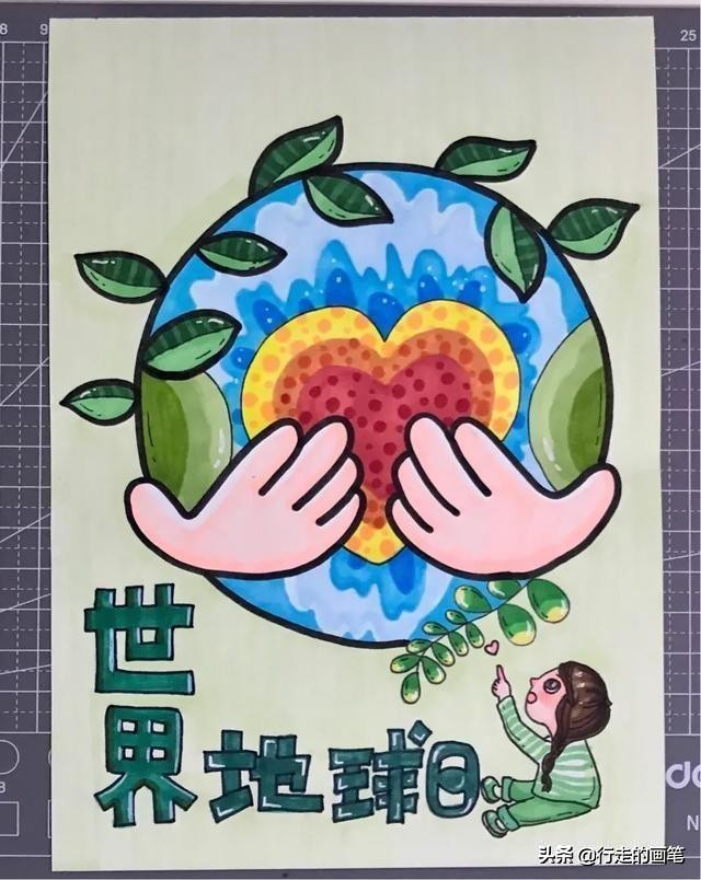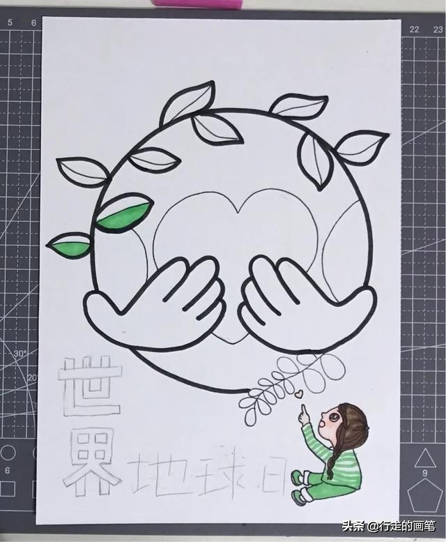 这样,世界地球日宣传画就画完了,小朋友快快拿起画笔,绘画出你的宣传画吧。