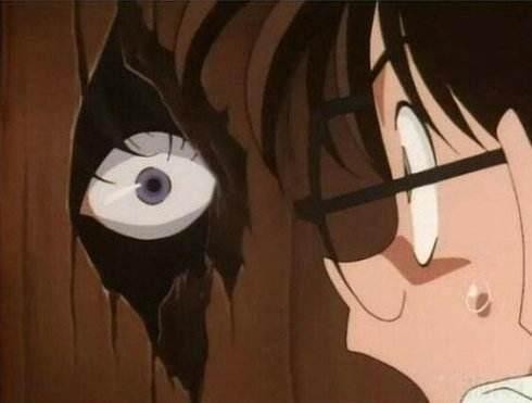 虽然这一集恐怖的地方就一幕,就是柯南往门缝里看的时候突然出现一只眼睛,相信这一幕吓到了不少人!
