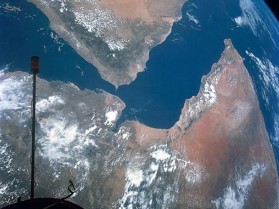 从双子座 11 号航天器上看到的阿拉伯半岛(左)和非洲东北部(右)