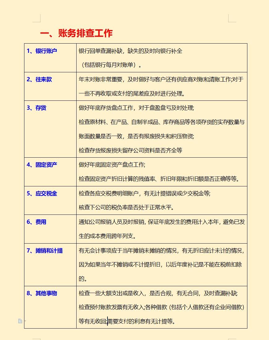 2022年底财务工作必做清单排查表