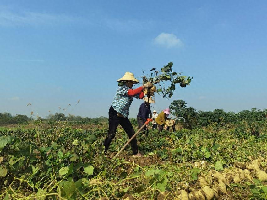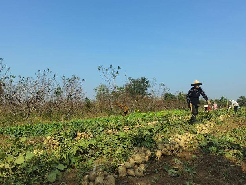 据了解,云梦县义堂镇助兴合作社的凉薯种植主要分布胡蔡村和新街村,今年种植面积在200亩左右,每年从6月份开始种植凉薯,10月份便可采挖上市,预计亩产9000斤,主要销往武汉、湖南等地。近年来,随着凉薯种植的逐渐发展壮大,在进一步促进特色产业提质增效的同时,也有效带动了更多村民实现“家门口”就业。义堂镇村民彭凤英说:“我就是这附近湾儿里的,天天跟老板们在打工,一天也能赚个100多块钱,天天跟他挖地瓜。今年的地瓜丰收了。”
