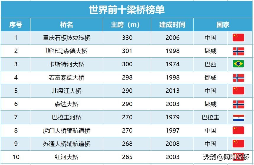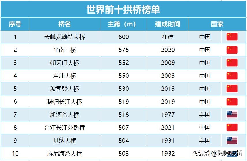 最新!世界桥梁排名榜单出炉,五星红旗迎风飘扬
