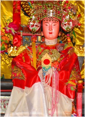“妈祖”名林默,福建甫田湄洲岛人,出生于宋太祖建隆元(960)年,祖父、父亲都为朝廷地方大员。妈祖出生时的夜晚流星化作红光照耀整个湄洲岛,八岁读书,过目成诵,长大后矢志不嫁,决心终身行善济人。妈祖精研医学,为人治病防疫;通晓天文气象,闻海船遇险立即前去帮助船主;乐善好施,人有难事即设法避凶趋吉。当时,湄洲岛上人们称其为“神女”。宋太宗雍熙四(987)年9月9日,年仅28岁的妈祖不幸与世长辞。妈祖离世,航海的人们就看见她身着红装,飞翔海上救助遇难船只,于是就在湄洲岛上建起了妈祖庙,海上行船开始供奉妈祖神像。明朝永乐年间,航海家郑和两次奉旨在湄洲岛主持御祭妈祖仪式,扩建妈祖庙,台湾及东南亚各地也建起众多妈祖庙。从宋高宗绍兴年间起,宋、元、明、清各代皇帝先后36次册封妈祖,妈祖成为东亚、东南亚地区人们信仰的女海神、航海保护神,全球庙宇超过2千座,信众超过2亿人,祭祀仪式独特,“妈祖信俗”被列为人类非物质文化遗产。