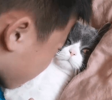 吸猫是件老少皆宜的事情,不论是半大的孩子。