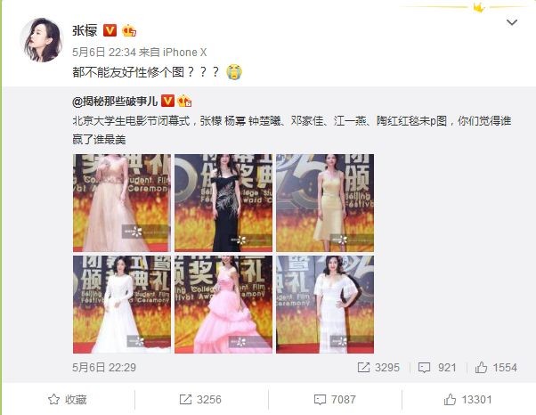 还转发微博吐槽别人没有给她修图