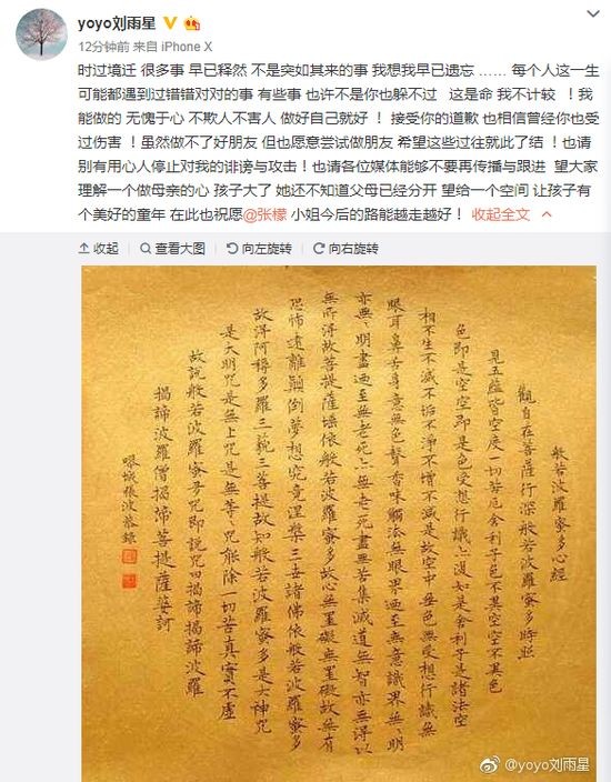 今天凌晨,张檬在微博发长文承认曾经插足刘雨欣婚姻,并向刘雨欣道歉。随后,刘雨欣也回应称接受道歉,愿意尝试做朋友。