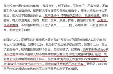 现在自己长大了,学会了面对自己,诚恳地向刘雨欣和她的家人表示抱歉。