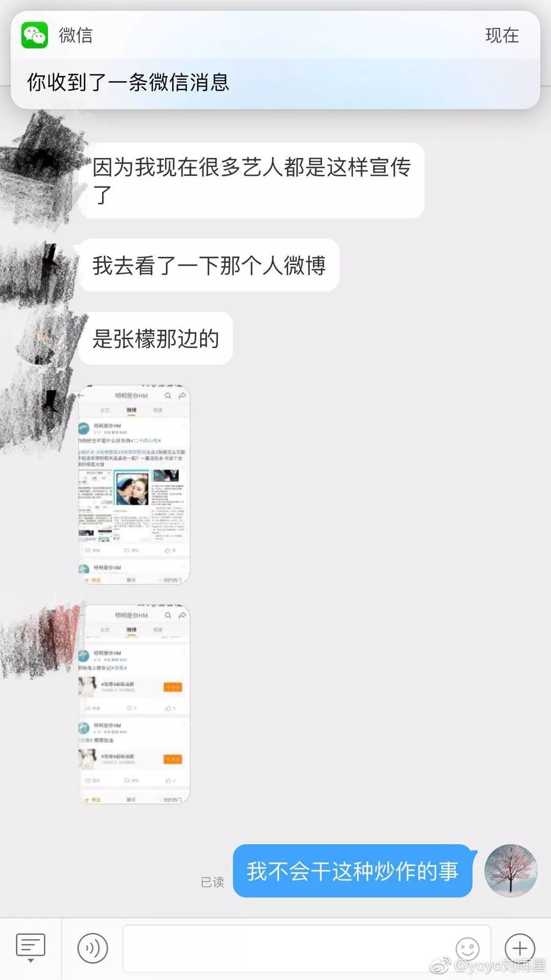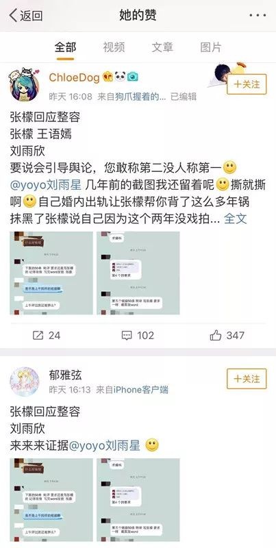 这几张黑张雨欣婚内出轨,帮张檬说话的截图也被认为是张檬团队抹黑张雨欣的证据。