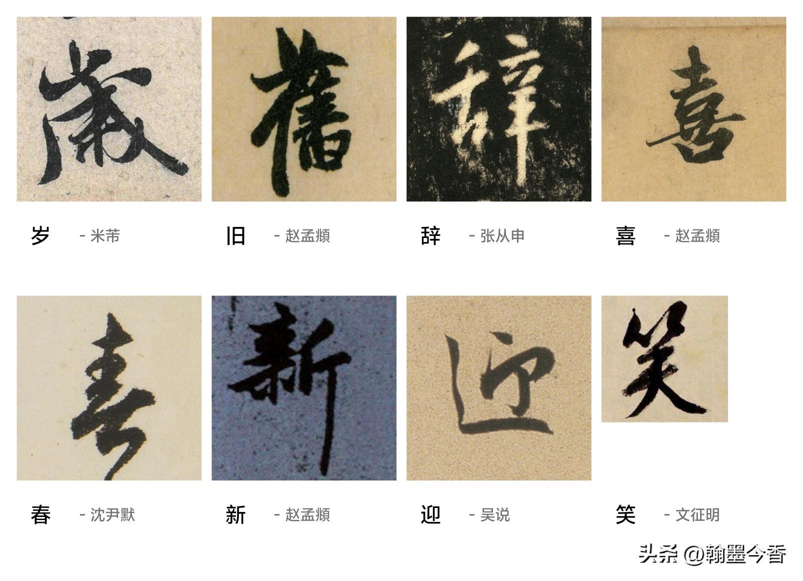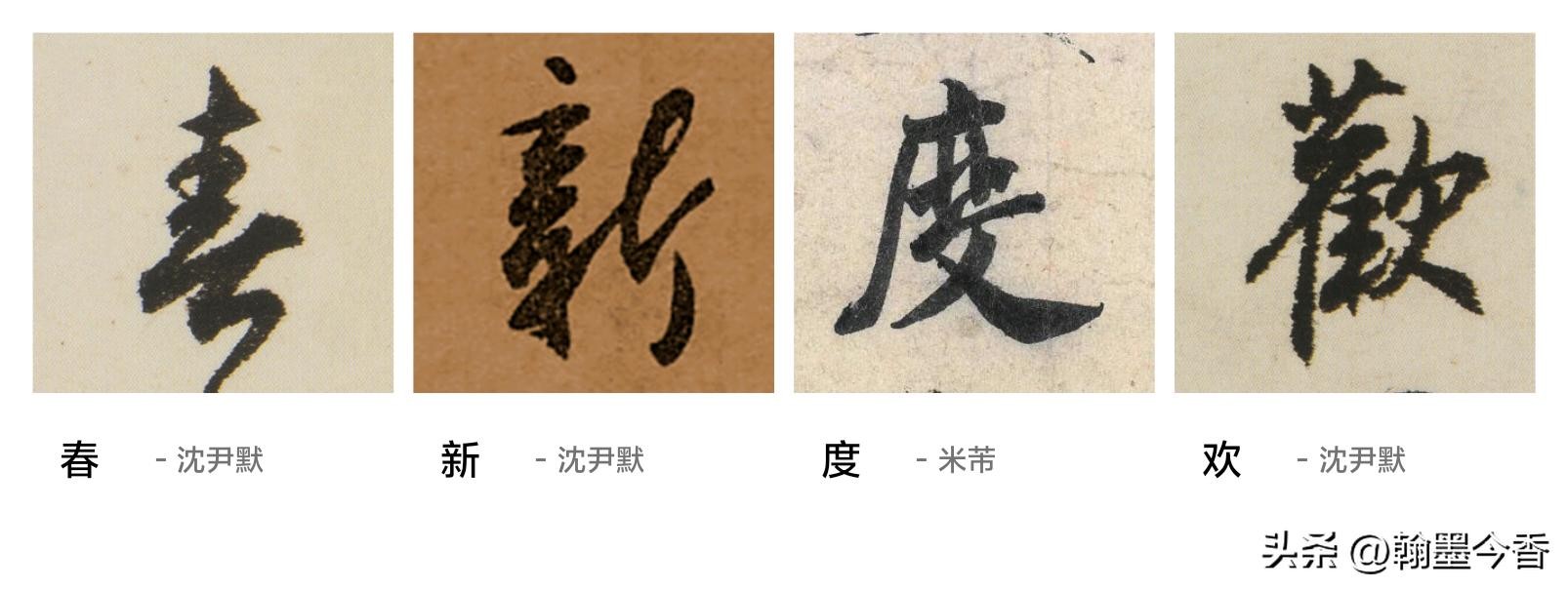 书法的集字,除了讲究书法风格的相近,更要讲究章法上的一些变化,以及适合春联这种大众化的欣赏需求,要求雅俗共赏。