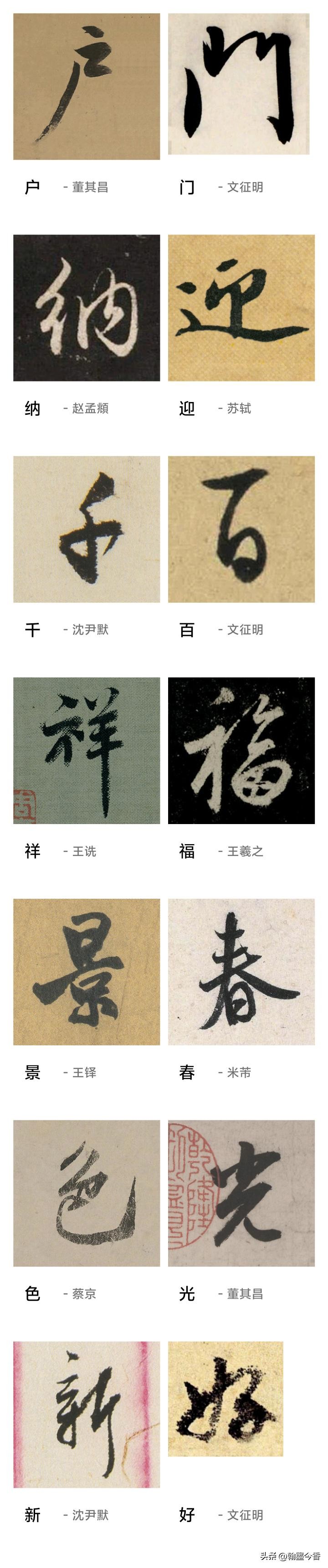 下面还有一些集字的横批,古代的阅读都是从右向左的,这是需要现代人注意的: