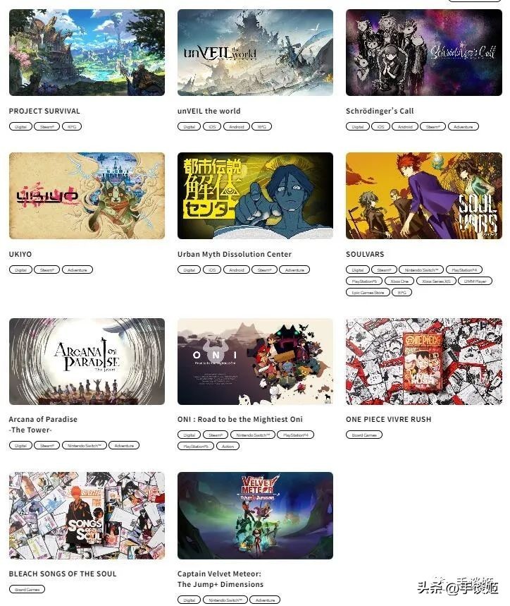 目前在集英社游戏的主页,存在11款游戏的展示,其中包括两个ip改编桌游,以及一些未发售的游戏。