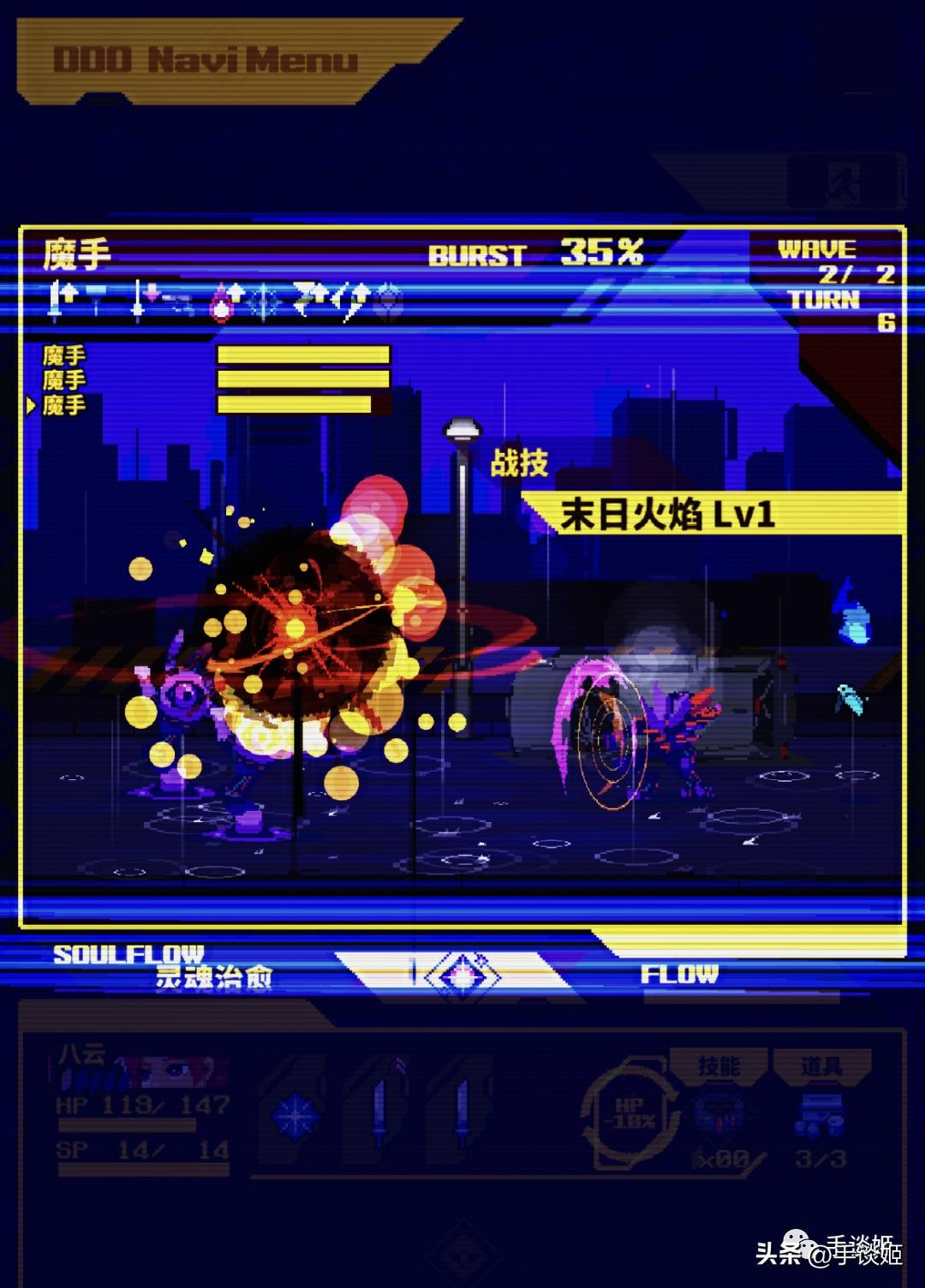 不过游戏中的一些设定还是很帅的,比如角色残血变身、巨大的日式rpg大怪物之类的……有人说像《最终幻想》里的召唤兽大战,姬倒更想用《异度神剑》来打比方啦,毕竟说到底还是个像素画的游戏,纵使招数很帅,想要脑补成那种级别的cg大战,对于脑部想象力的要求还是比较大的。