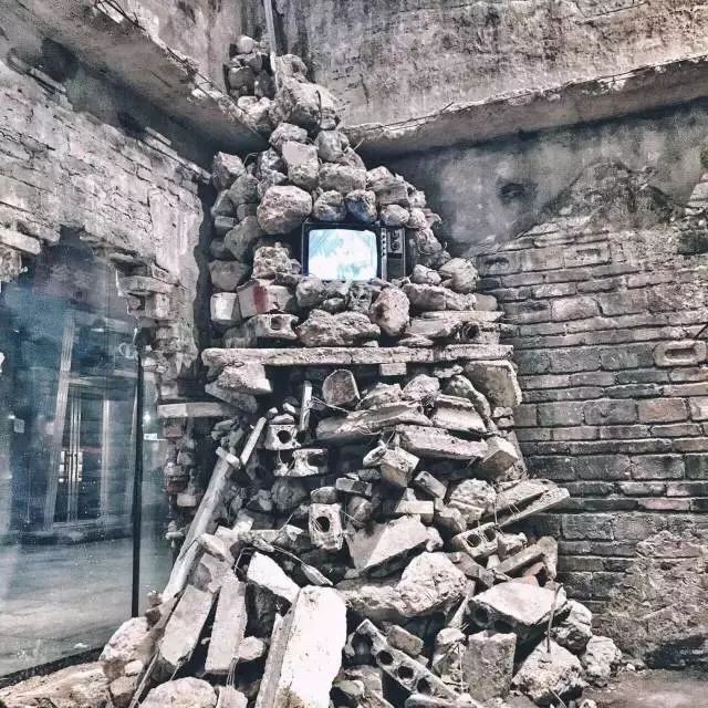 这个创新的设计,我想长沙只有在这儿才能看到。充满做旧即视感,水泥钢筋呈现它最原始的一面。碎石堆里摆放着一台80年代的老电视,满满的回忆感浮现脑海。