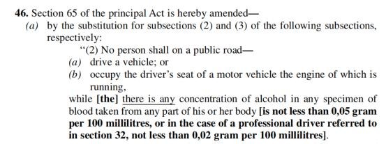 其中最引人注目的是,提议对醉酒驾驶采取零容忍的政策,将第65条有关涉酒驾驶普通司机和职业司机BAC分别为50mg/100ml和20mg/100ml的认定标准全部调降到0mg/100ml。