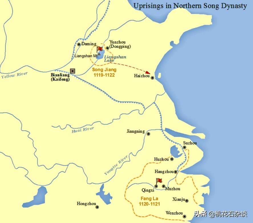 历史上真实的宋江起义大致涉及区域