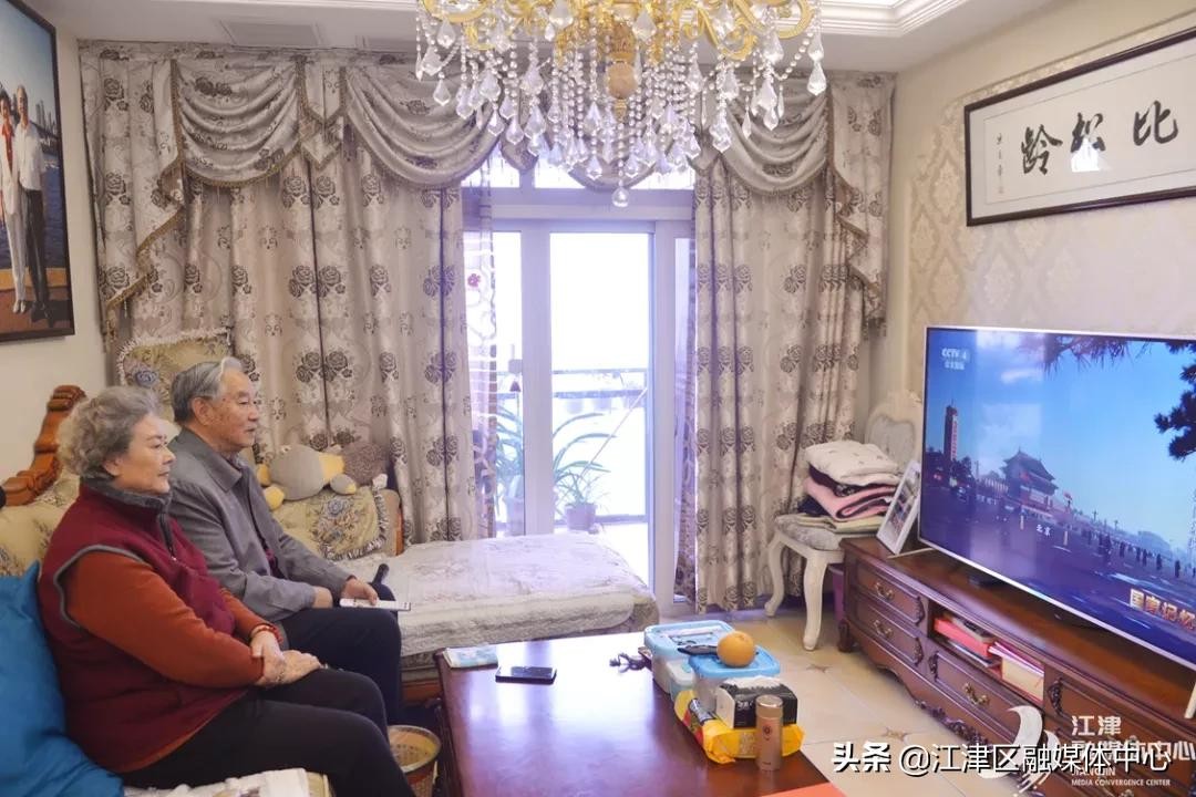 △邓若曾夫妇在白沙家中收看《国家记忆》纪录片《女排娘家》