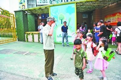 【老人幼儿园门口给每个孩子敬礼 36年风雨无阻】据武汉晚报报道,每天早上7点半,在湖北省军区幼儿园门口,都会出现一位79岁老人的挺拔身影,他给每个入园的孩子敬礼,孩子们也会站得笔挺,来个“回礼”。36年来,天天如此。老人叫李国发,他说想通过这种方式给孩子们“壮胆量、直腰杆、长个子”。家长则说他教会了孩子坚持,“看到爷爷,即使天气再冷,孩子也能坚持入校。”
