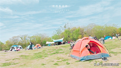 刚走进公园里,眼前就出现了大片大片的草地。哇,这里人太多了吧,他们早就搭起了五颜六色的帐篷,好不热闹。成都是休闲之都,成都人天生就懂得生活,给他们一片草地,就可以变出各种花样休闲娱乐。远远就看见一大块湖泊,我迫不及待地走了过去,有几只游船停在岸边,有一些人买了票,在排队等着上船呢。我看了下坐船的价格,倒是挺亲民的。