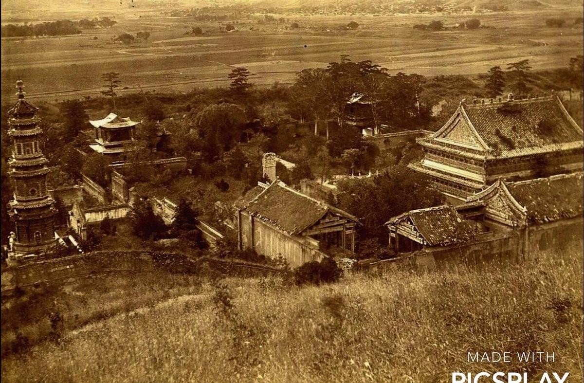 文昌阁的三部曲。图1,1860年,被烧之前的文昌阁。图2,被烧之后的残迹。图3,重修之后的文昌阁。