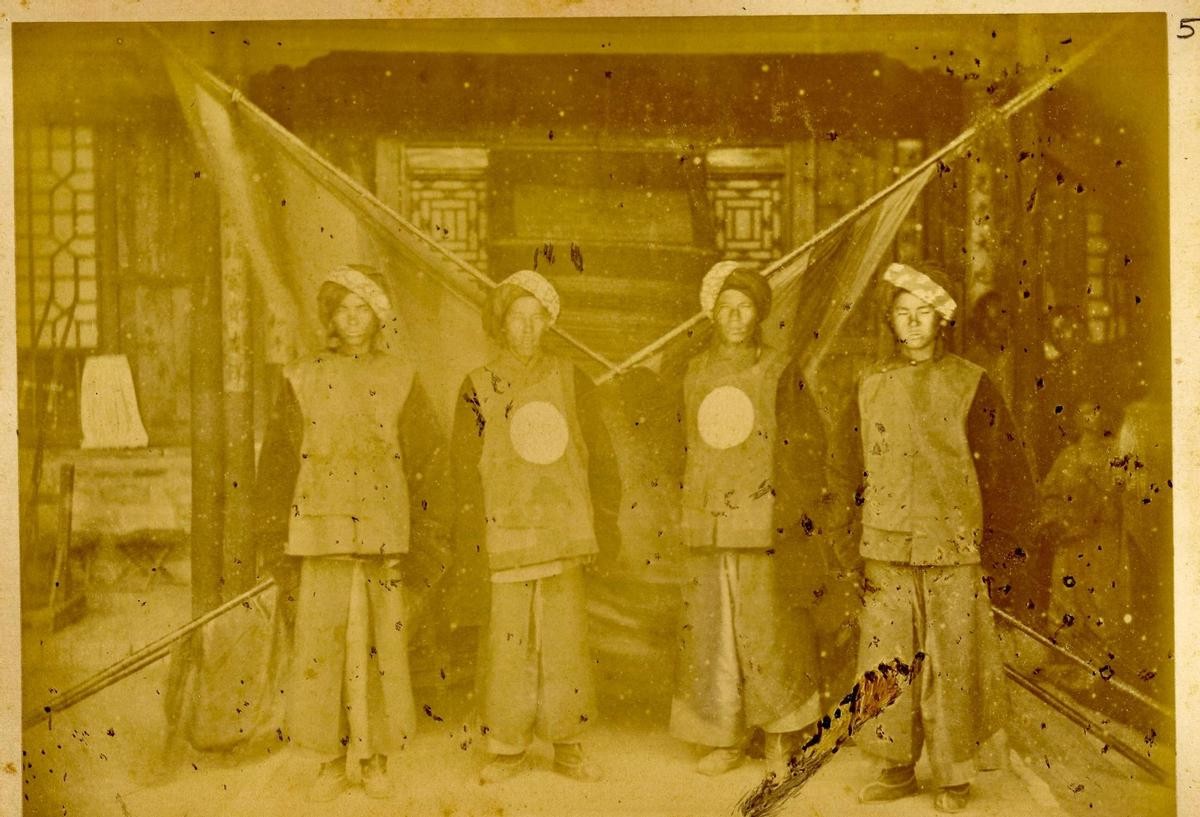 1874/1875,俄罗斯人拍摄的西北地区清兵和地方武装。左图是新疆。其余地点未知。