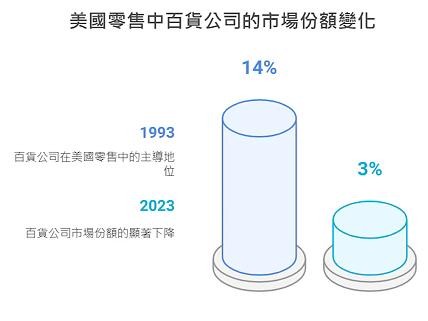 百货公司曾是消费者购买高端商品的主要渠道,但随着电商兴起和折扣零售商的竞争,越来越多消费者转向亚马逊、塔吉特(Target)等线上线下结合的购物方式。此外,许多新兴品牌也选择绕过百货公司,直接在社交媒体和自有网站销售产品,使得传统百货店失去品牌吸引力。