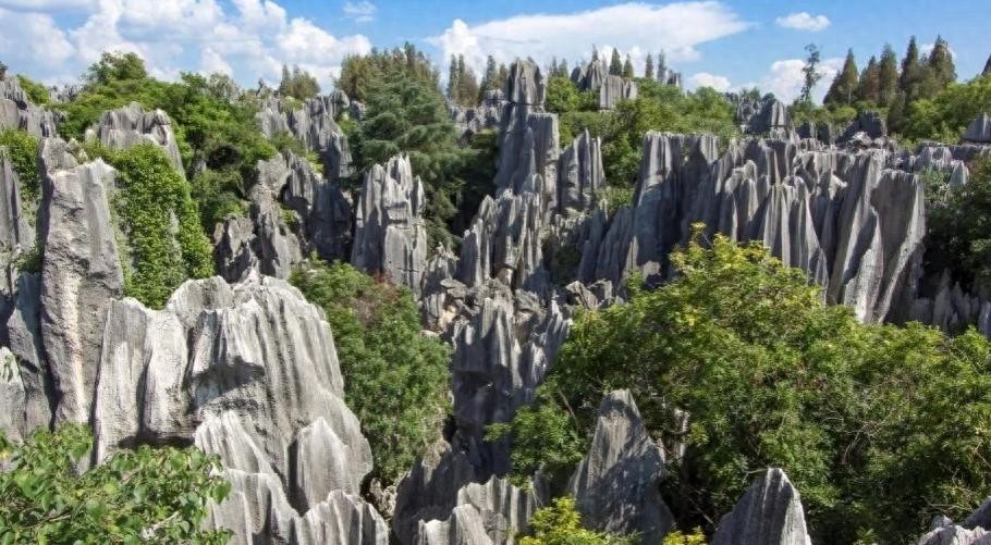 石林位于昆明市,以其奇特的喀斯特地貌和丰富的民族文化而闻名。在这里,游客可以欣赏到形态各异的石柱、石峰和石洞。