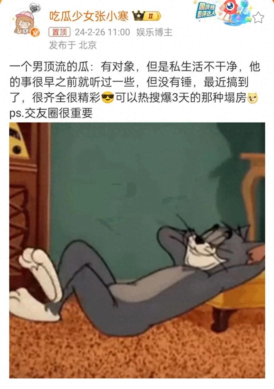先是张小寒爆料内娱男顶流塌房,热搜能挂三天,引起网友好奇,然后再不断抛出各种线索,让网友猜测。