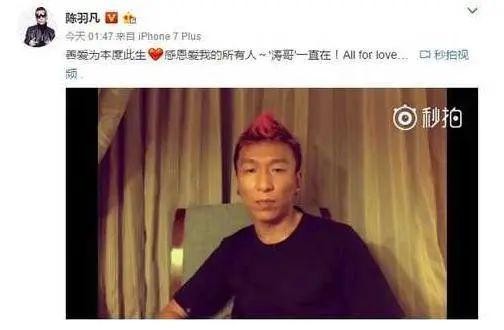 2017年4月16日凌晨,陈羽凡发视频回应“白百何出轨事件”,称自己和白百何已与2015年协议离婚;并称自己将无限时退出娱乐圈。