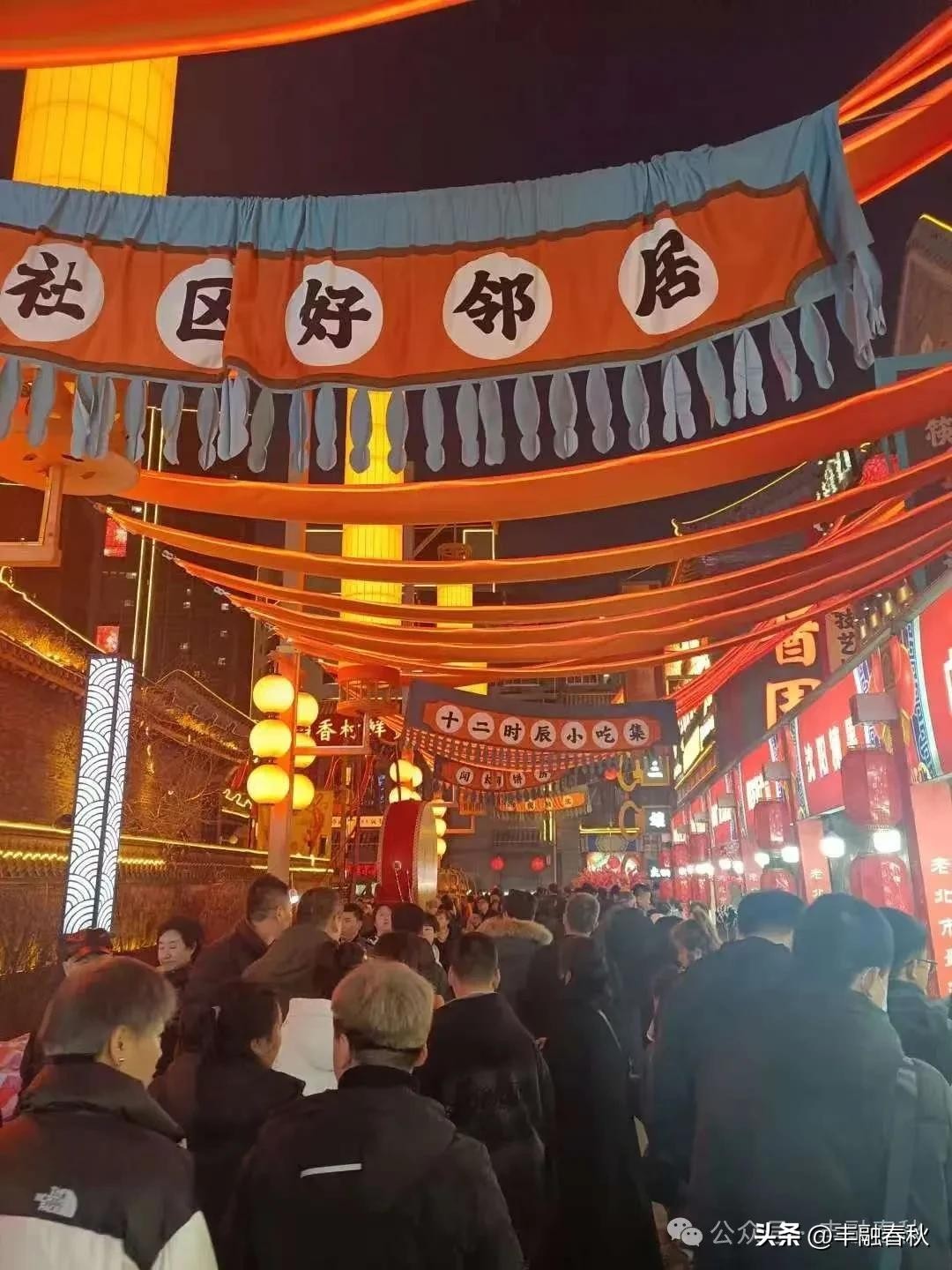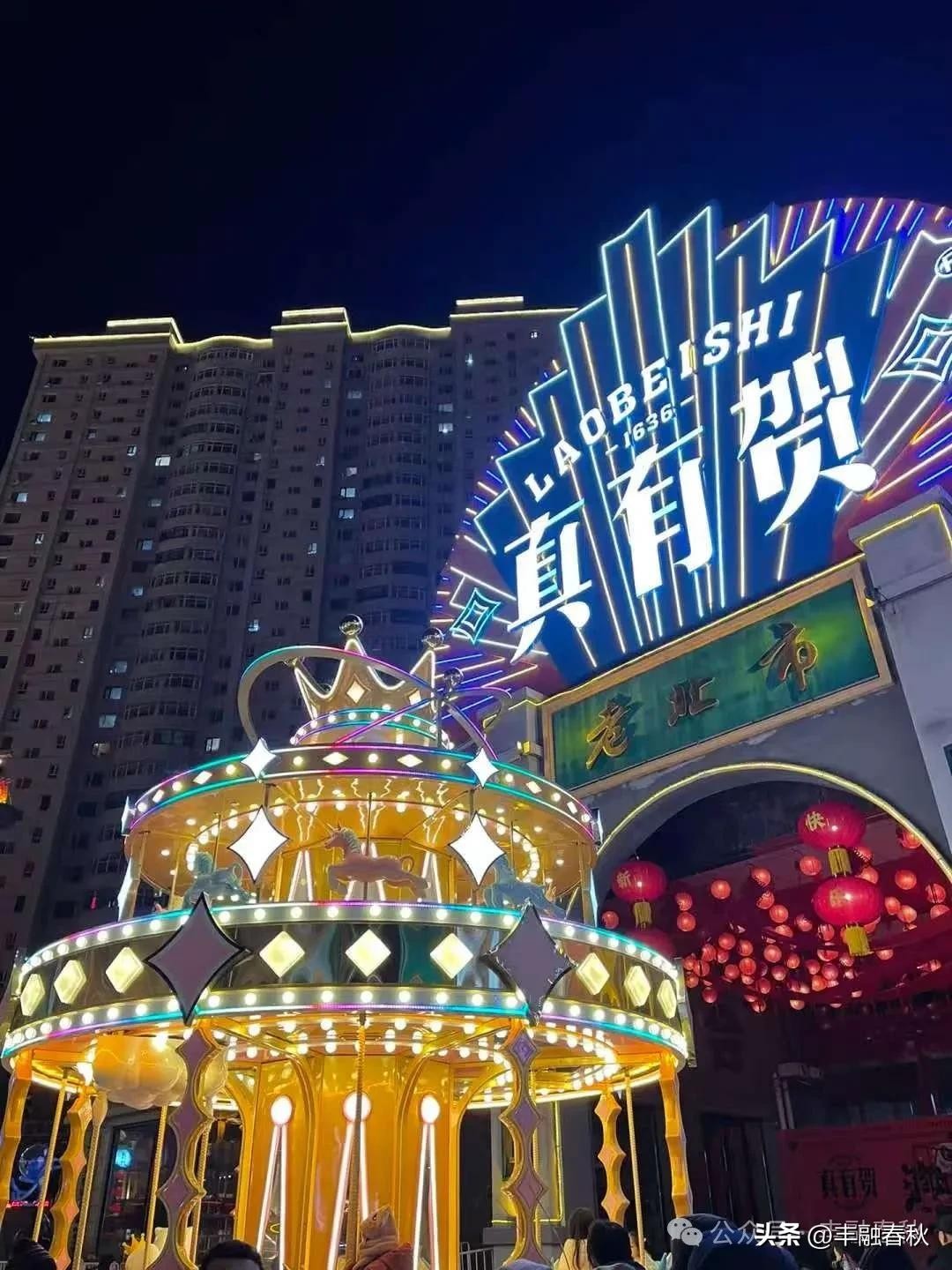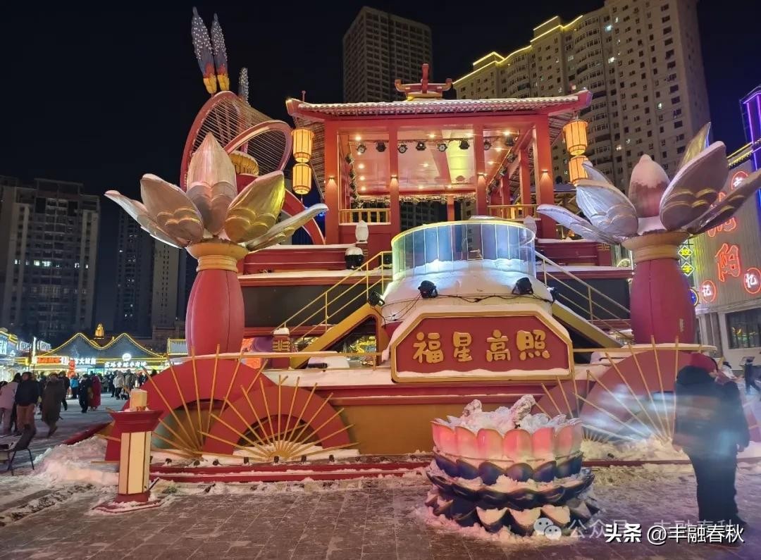 我们好不容易挤进院内,被眼前的一幕所惊呆。游人们不顾零下近30度的寒潮,挤满了各个摊位和档口,特别是小吃摊均排队购买,津津有味的品尝。门牌楼阁、喜庆大鼓及标志性建筑都设计成灯光秀,拍照的人一拨又一拨,人们冻得通红的脸庞丝毫看不出痛苦的表情,有的都是幸福快乐的微笑。来不及收拾干净的积雪也被游客炙热的穿梭所融化,那真是灯光辉映、五彩斑斓、人声鼎沸、热闹非凡,琳琅满目、眼界大开、红红火火、欢乐祥和。