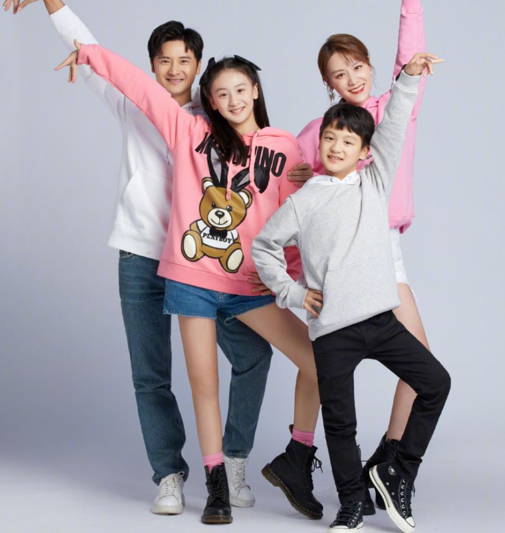 与森蝶相反,12岁的小亮仔则坐在爸爸的腿上,他的穿搭仿佛来自英伦的都市风情,展现出他成熟无比的一面。从他稚嫩的面庞中透出一份早熟的气息,仿佛他的年纪不仅仅只是12岁,更像一个拥有智慧和思考能力的哥哥。田亮和叶一茜的基因默契地融合在森蝶和小亮仔的身上,让整个家族在这一瞬间彷如一个镜子的映照。他们坐在一起,彼此之间的相貌如同复制粘贴一般。这才是真正的全家共用一张脸,每一个细节都昭示着他们的亲缘关系。