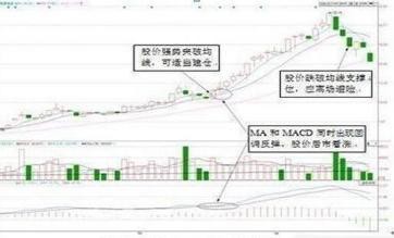 如图二所示,中信证券日K线图中,该股的股价前期一直处在横盘整理的走势之中,随后股价开始缓慢上涨。但在小幅爬升之后,股价出现短暂的回调,同时其成交量也出现了萎缩。此时,该股的MACD指标的DIF线与DEA线和MA指标的5日线与10日线呈现出靠拢的走势,但是其并未形成死叉,而是在靠拢之后出现反弹向上的走势。表明股价后市会延续上涨行情。投资者在股价突破均线时应买入股票,进行建仓。