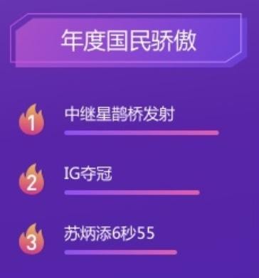 而在年度国民骄傲方面,我们可以惊喜发现“IG夺冠”这一年度游戏圈热门事件,在榜单中位列第二。