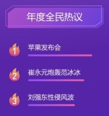 年度全民热议:苹果发布会、崔永元炮轰范冰冰、刘强东性侵风波、乘网约车遇害、高铁“霸座”事件、昆山反杀案、逃犯克星张学友、抵制天价片酬声明、王思聪开奖、D&G辱华;