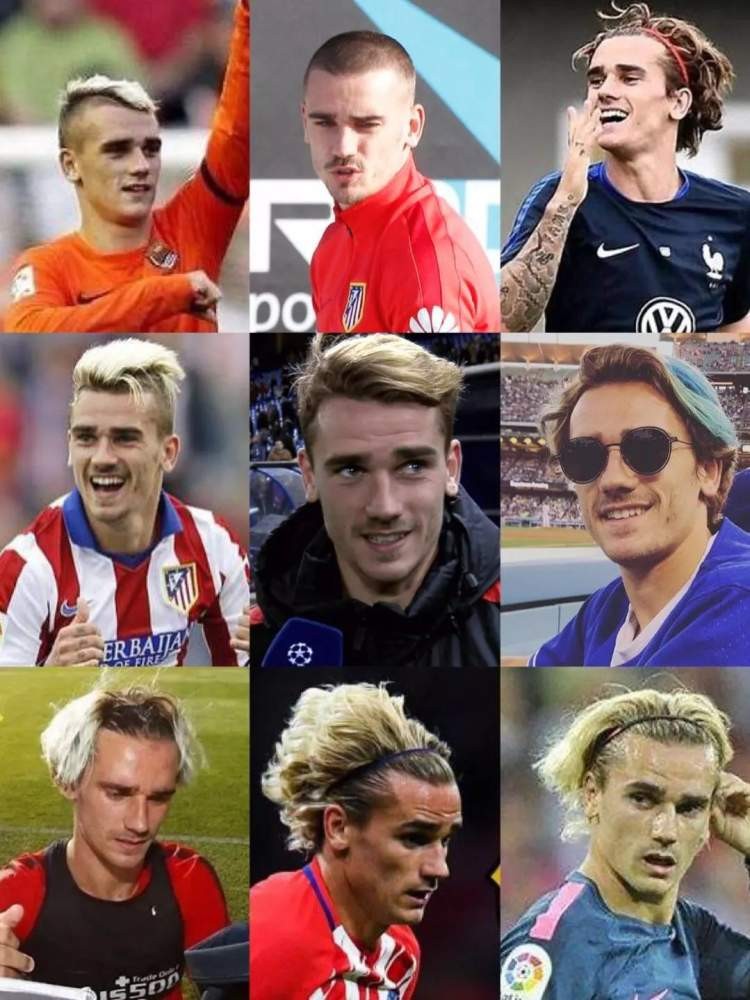 格列兹曼也是个喜爱换发型的球员,因为长相帅气,各种发型、发色都能轻松驾驭。