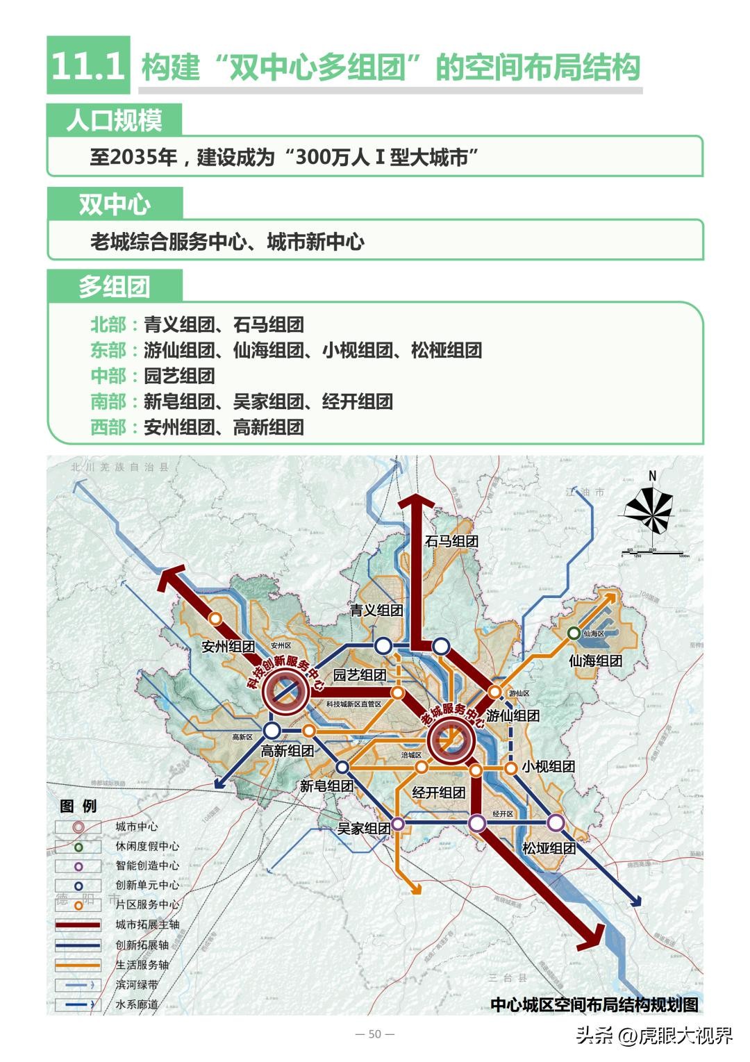 这就是2035年绵阳“双300”国家I型大城市的格局,双中心+12个组团。