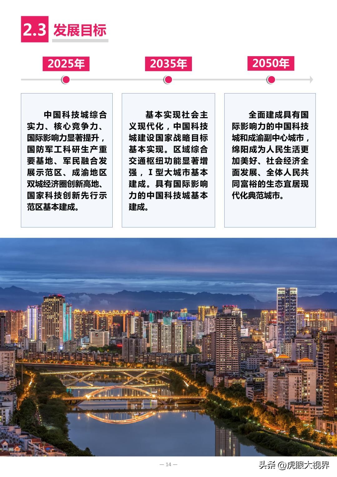 这是绵阳的发展目标,一切规划都是围绕发展目标进行的。2025年是近期目标,2035年是中期目标,2050年是远期目标。