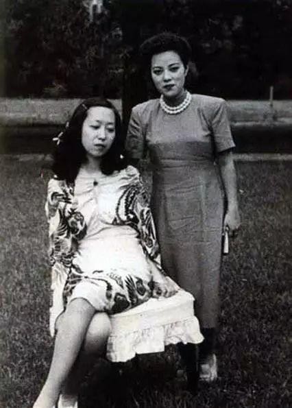 1943年,张爱玲与日本影星李香兰(站者,原名山口淑子)在上海留影。