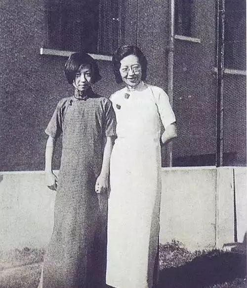 张爱玲与父母感情均很淡漠,但独与姑姑张茂渊感情深厚。这是她与姑姑在公寓楼顶阳台的合影。那时的张爱玲还是少女,一脸青涩的表情。