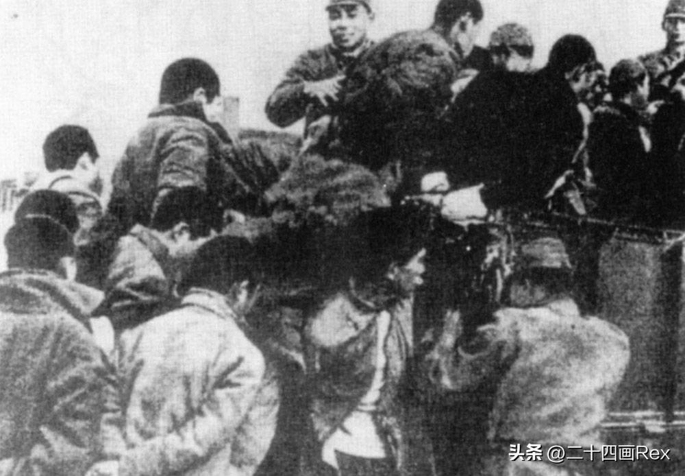 日军捆住年轻男子的手腕,用卡车将他们运到南京郊外集中处决。