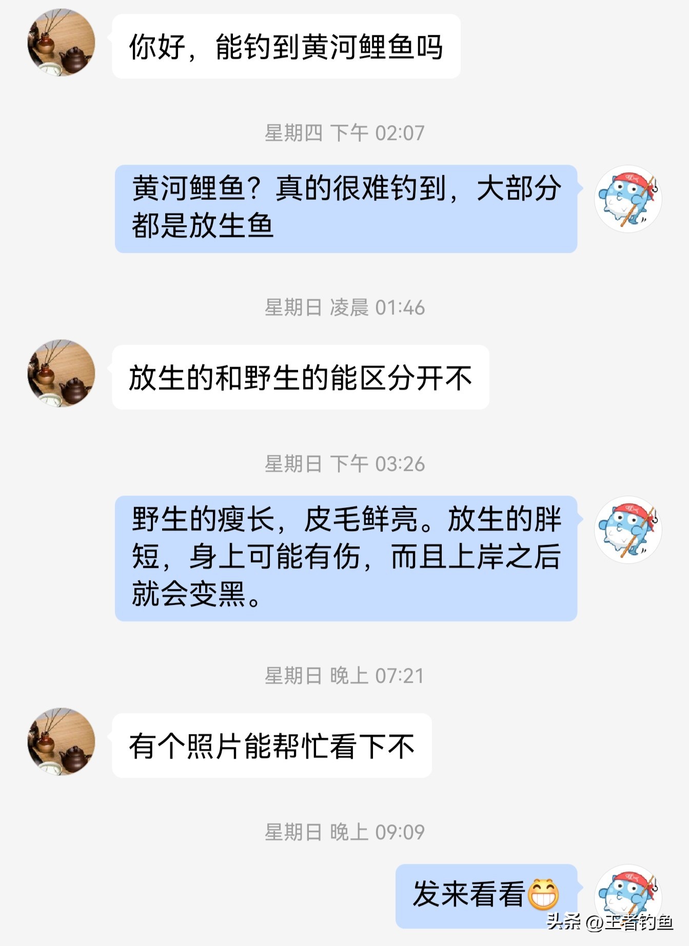 这位名为“旅行者”的河南网友问:“放生鲤鱼和野生黄河鲤鱼怎么能区分开?”同时,他将几条在黄河里捕到的鲤鱼图片发了过来。