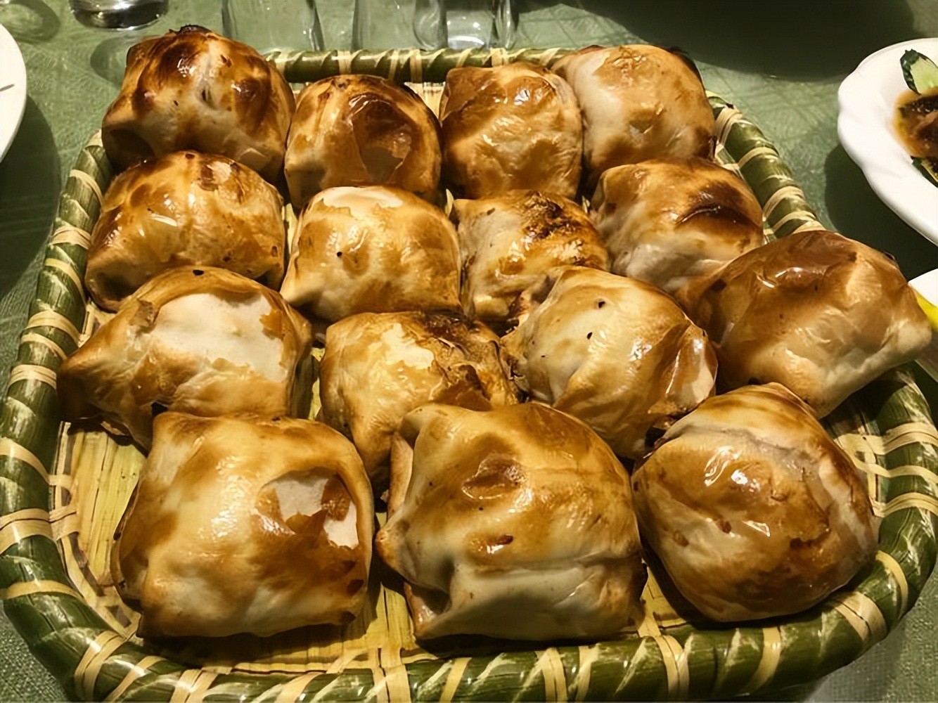 新疆位于西北,是连年举办中国美食节的地方之一。在这片土地上,有一种外形碗状的烤包子深受当地人的喜爱。这种包子名字就叫“烤包子”,和一般的蒸包子不同,新疆烤包子是将半发面团制作成碗状,放入大量的肉馅以及本地特色食材,再放在特制的烤箱里从上到下烤制而成,烤制时温度要达到300度以上才能烤透。新疆烤包子个头很大,重量超过1斤的不在少数,最厉害的甚至能到3斤重!而且馅料十分丰富,有羊肉、牛肉、驴肉等版本,摆上餐桌后一人能消灭一只也不在话下。